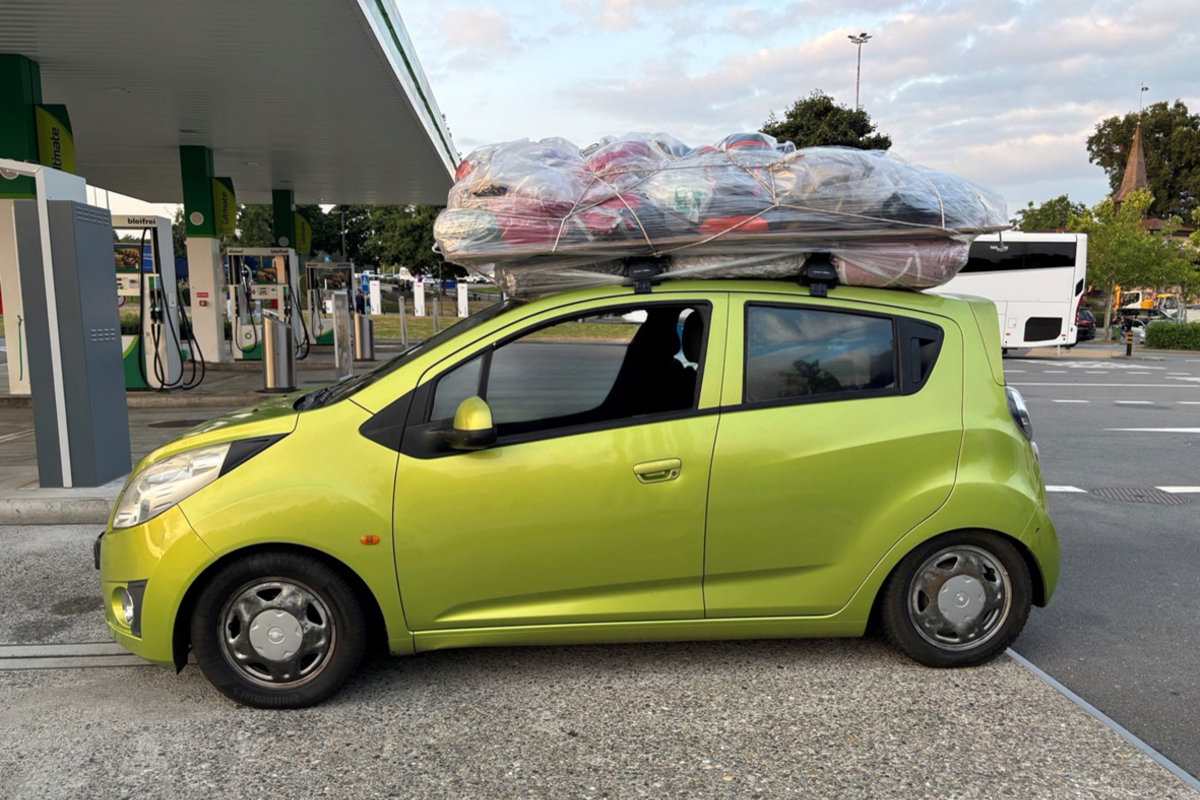 Auf der Raststätte Neuenkirch Ost stellte eine Patrouille am Donnerstag (3. Juli 2025, ca. 20:15 Uhr) ein stark überladenes Auto fest. Die Dachlast war mit 180 statt den zugelassenen 50 kg deutlich überschritten. Das Gesamtgewicht war ebenfalls um gut 180 kg überschritten.