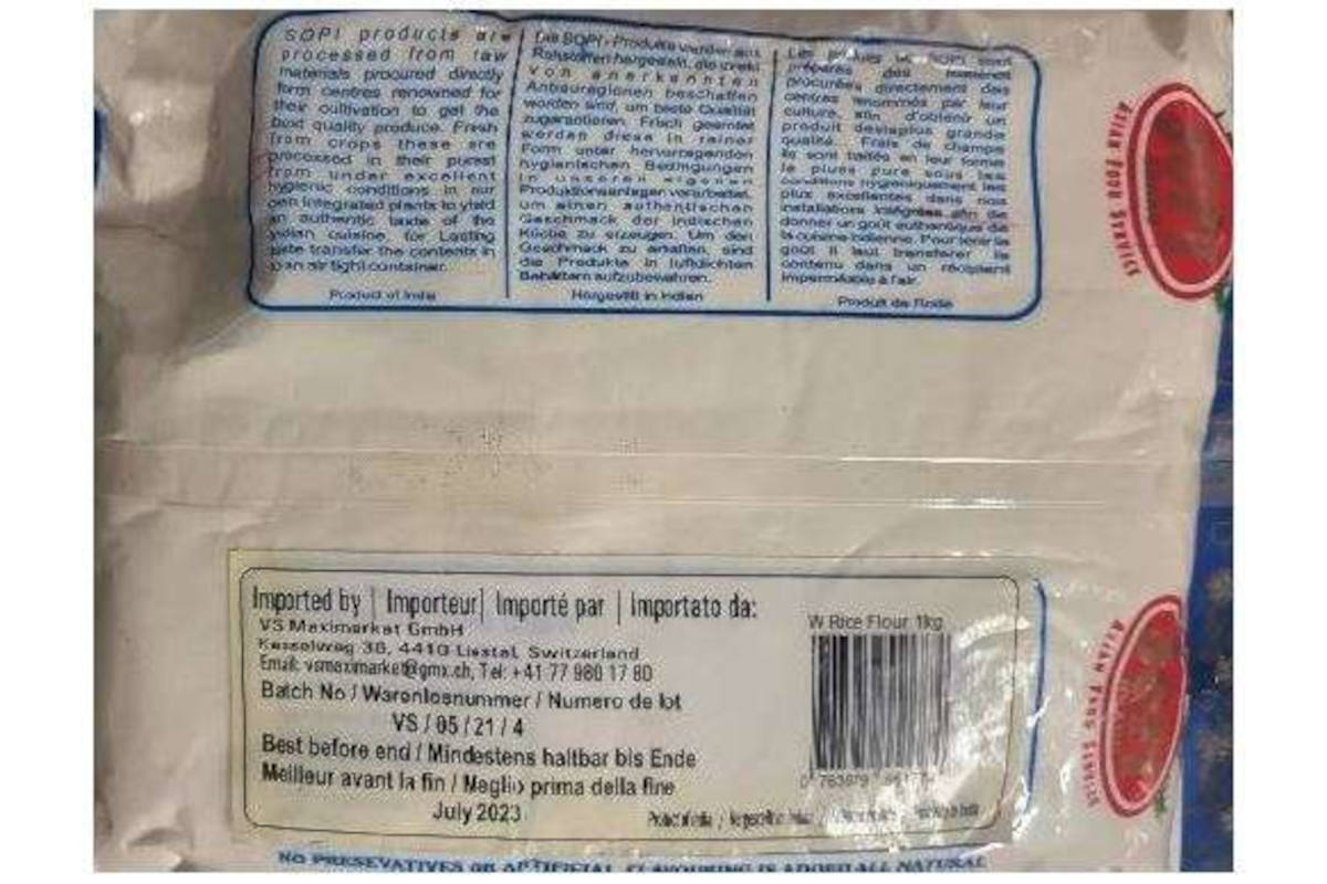 Rückruf – Roasted White rice flour 1 kg wegen zu hohen Pestizidrückständen (Bildquelle: VS Maximarket GmbH)