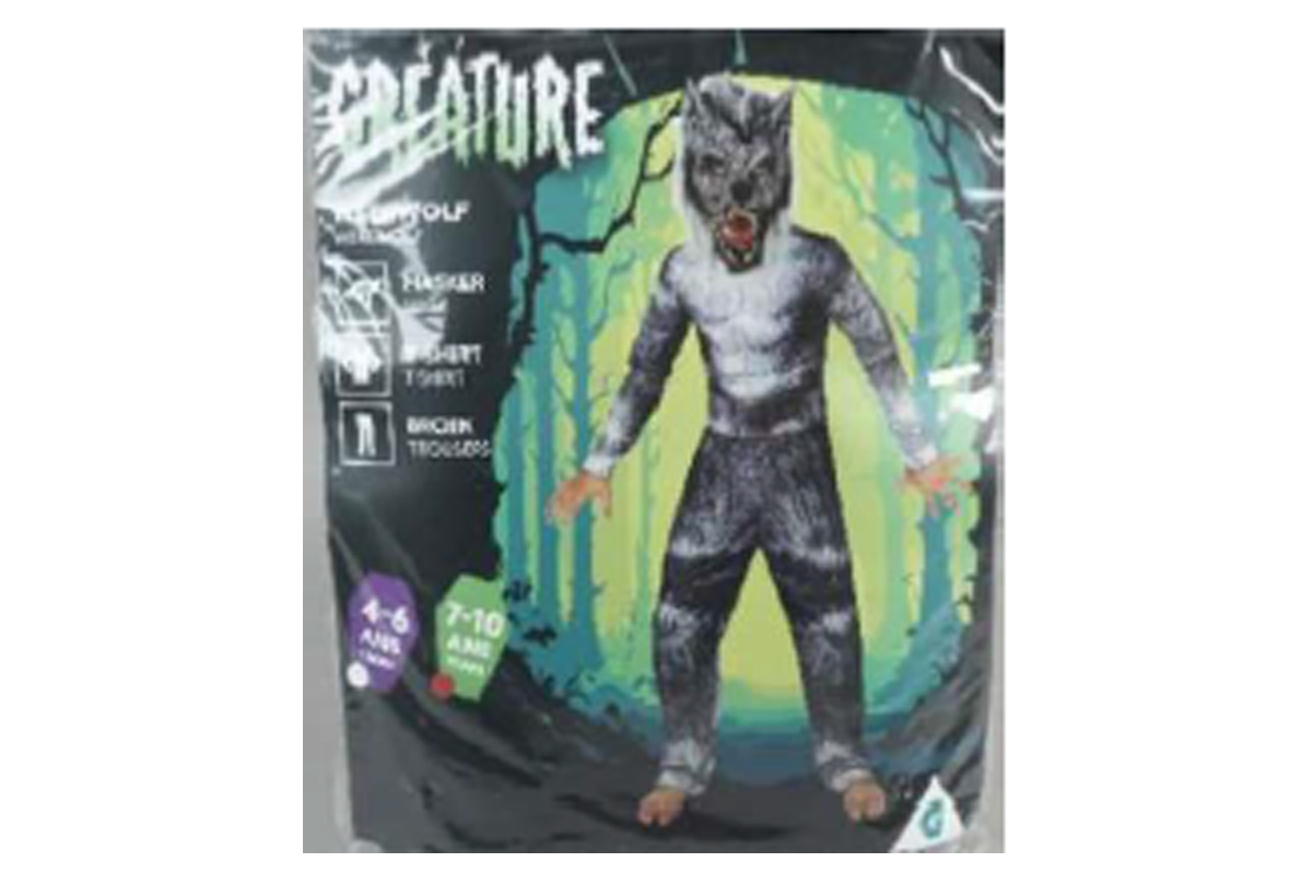 Das Werwolf-Kostüm mit den Codes 563372 bis 563374 darf nicht verwendet werden. (Bildquelle: RecallSwiss, GIFI)