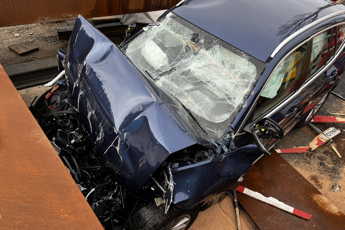 Auto prallt frontal in Eisenträger (Bildquelle: SHPol)