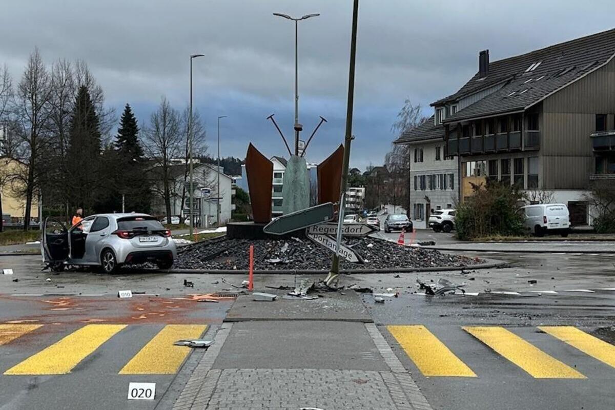 Der umgefahrene Inselschutzpfosten flog aufgrund des Zusammenpralls über den Kreisel und verletzte auf der anderen Seite ein 12-jähriges Mädchen, dass sich auf dem Nachhauseweg von der Schule befand. Das Mädchen und der Autofahrer wurden leicht verletzt in Spitäler gefahren.