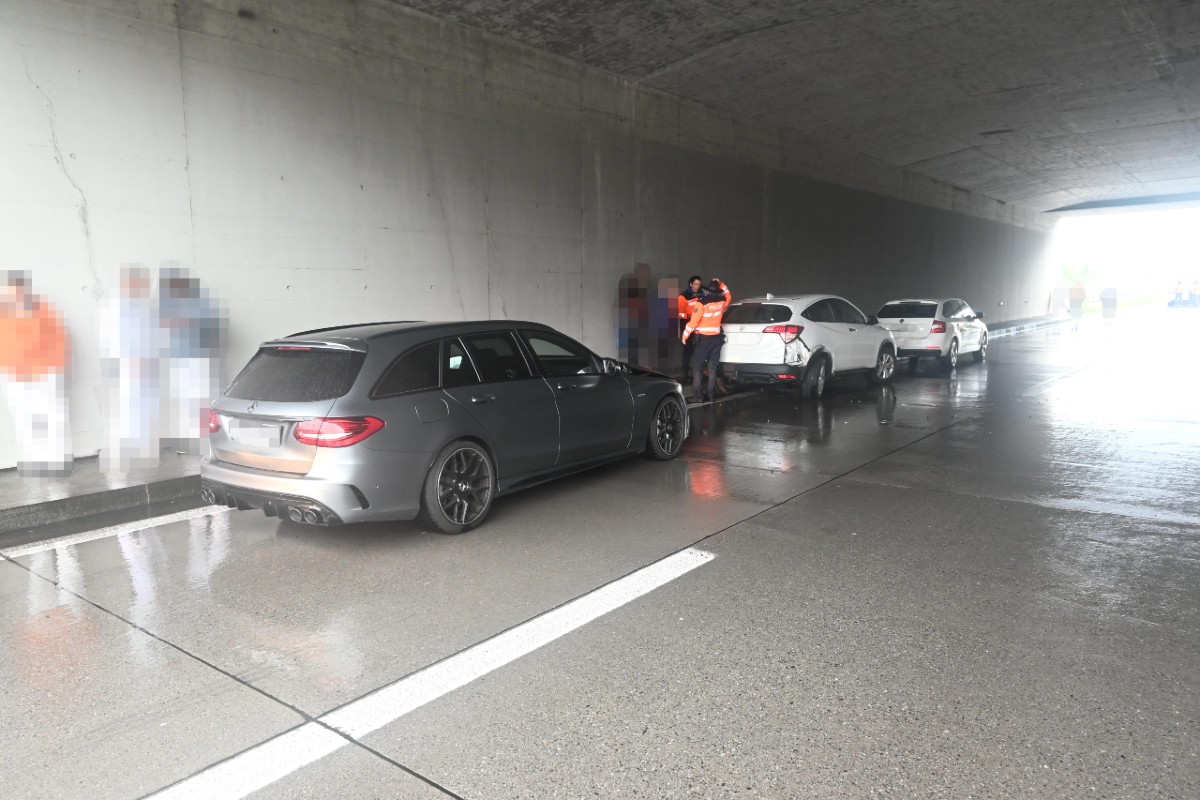 Dabei wurde niemand verletzt. Drei Fahrzeuge mussten abgeschleppt werden. Die Autobahn musste für rund zwei Stunden zur Unfallaufnahme und zur Bergung der Fahrzeuge einspurig geführt werden.