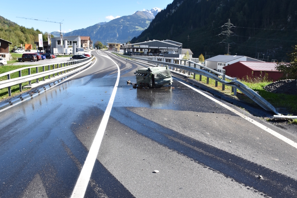 Dieser schlug auf der Leitplanke auf und kam auf der Fahrbahn zum Liegen. Das Öl im Transformator lief auf die Strasse aus. Dieses wurde zu Beginn durch Mitarbeiter des Tiefbauamtes Graubünden gebunden.