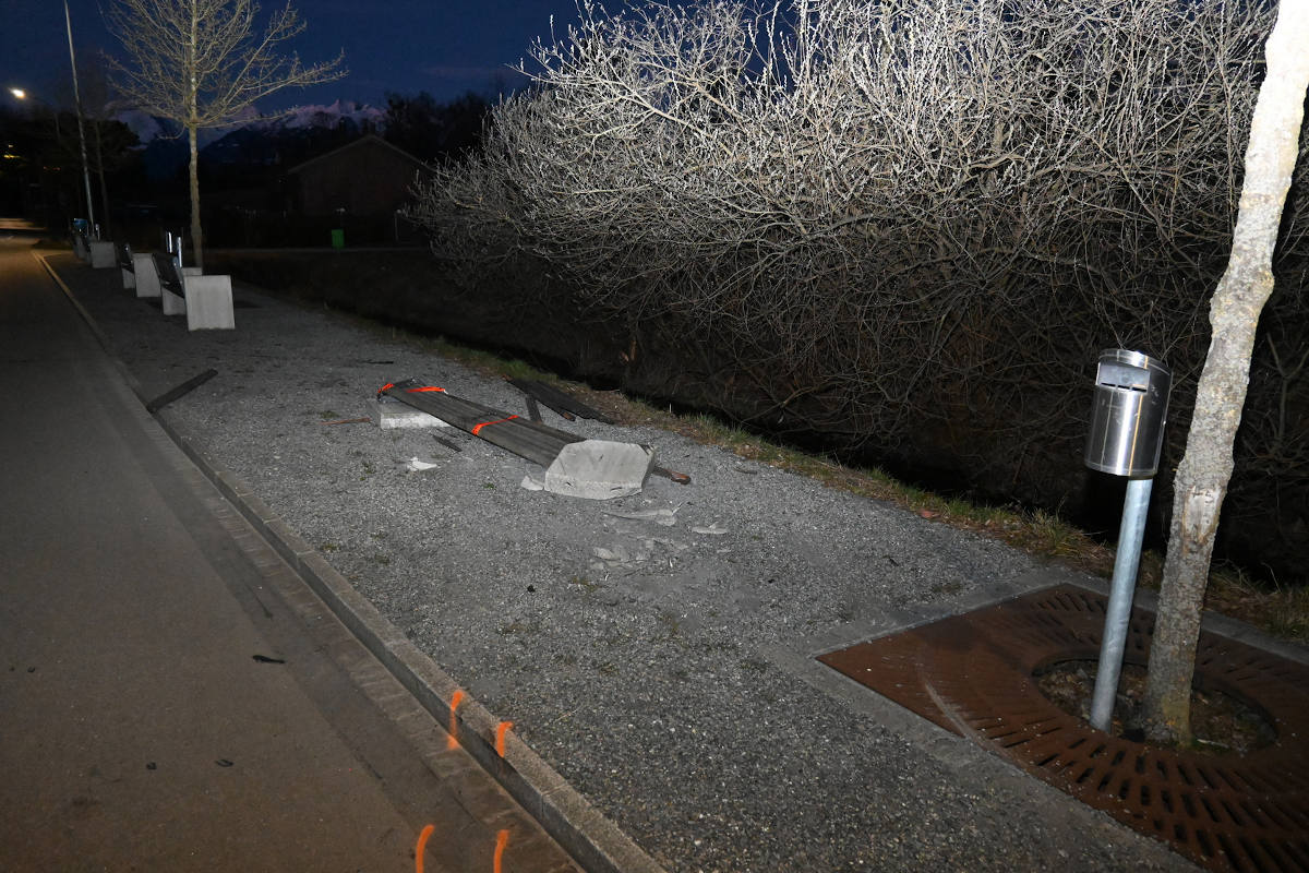 Mit Parkbank kollidiert (Bildquelle: Landespolizei Liechtenstein)