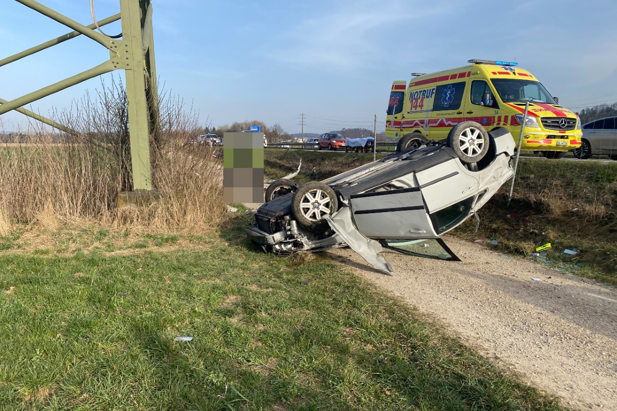 Fahrzeug überschlug und auf dem Dach zum Stillstand