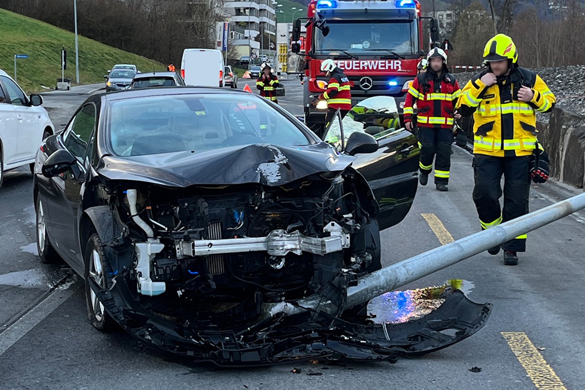 Hochwasser-Entlastungsstollens, wurde zurück nach rechts abgewiesen, kollidiert dabei frontal mit einem Strassenbeleuchtsmasten und kam in der Folge wieder auf der Gegenfahrbahn zum Stillstand.