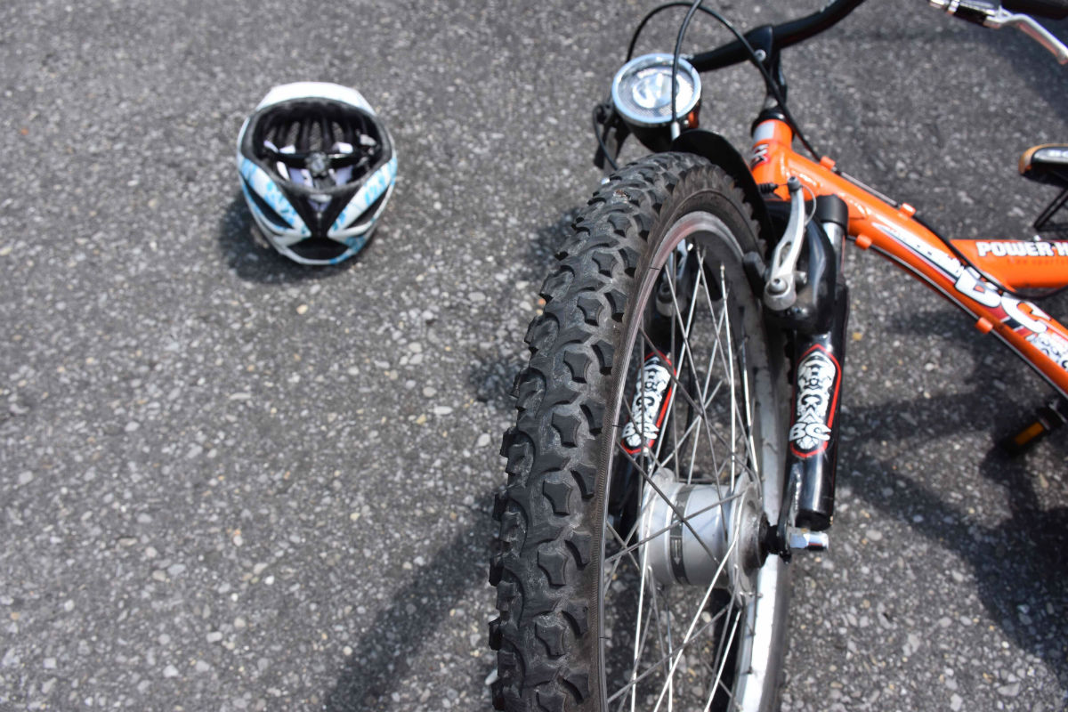 Mädchen beim Sturz ordnungsgemäss getragen. Am Kindervelo entstand leichter