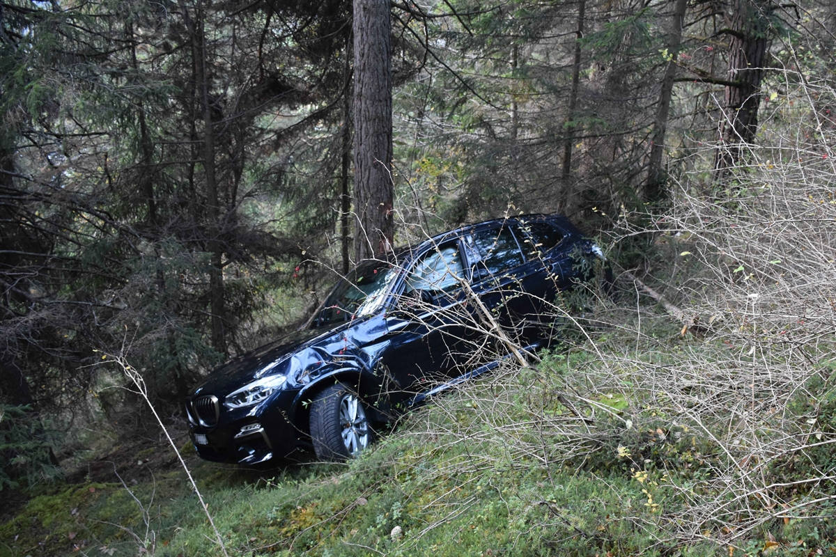 Fahrunfähig neben die Strasse geraten bei Sagogn (Bildquelle: Kantonspolizei Graubünden)