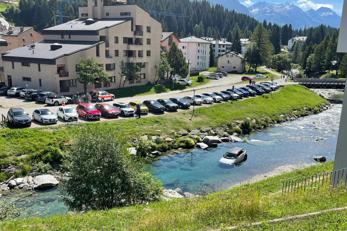 Am Freitag ist von einem Parkplatz in San Bernardino ein Auto in die Moesa gerollt. Der Autofahrer konnte sich aus dem Gewässer befreien.