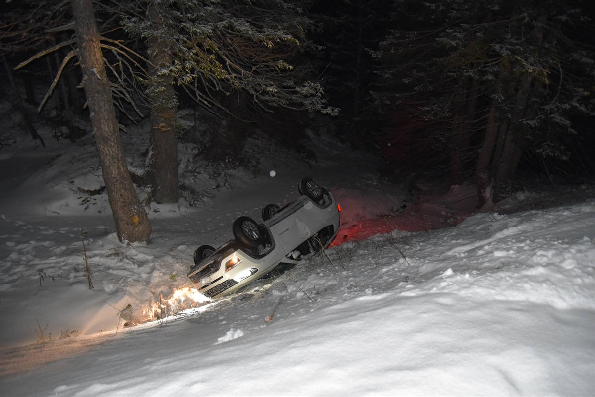 Der 23-jährige Personenwagenlenker und seine 22-jährige Mitfahrerin fuhren um Mitternacht vom Dorf San Bernardino in Richtung Campingplatz. Im Gebiet Alp Frach, unterhalb des Campingplatzes, kam das Fahrzeug rechts von der Strasse ab. Es stürzte die Böschung hinunter, überschlug sich und blieb rund zehn Meter unterhalb der Strasse auf dem Dach liegen.