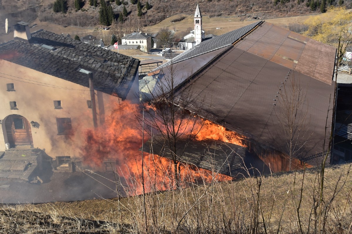 Am Dienstag nach 11 Uhr erhielt die Kantonspolizei Graubünden die Meldung des Bauern, dass im Weiler Somaino bei seinem Bauernhof ein Feuer ausgebrochen sei. Der Brand griff auf die nahe Scheune über.