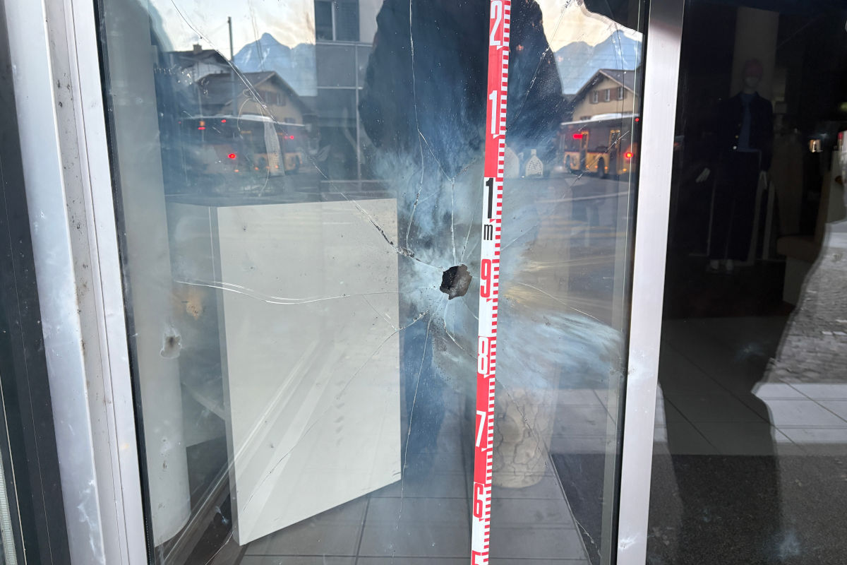Mehrere Schaufenster wurden beschädigt. (Bildquelle: Kantonspolizei Obwalden)