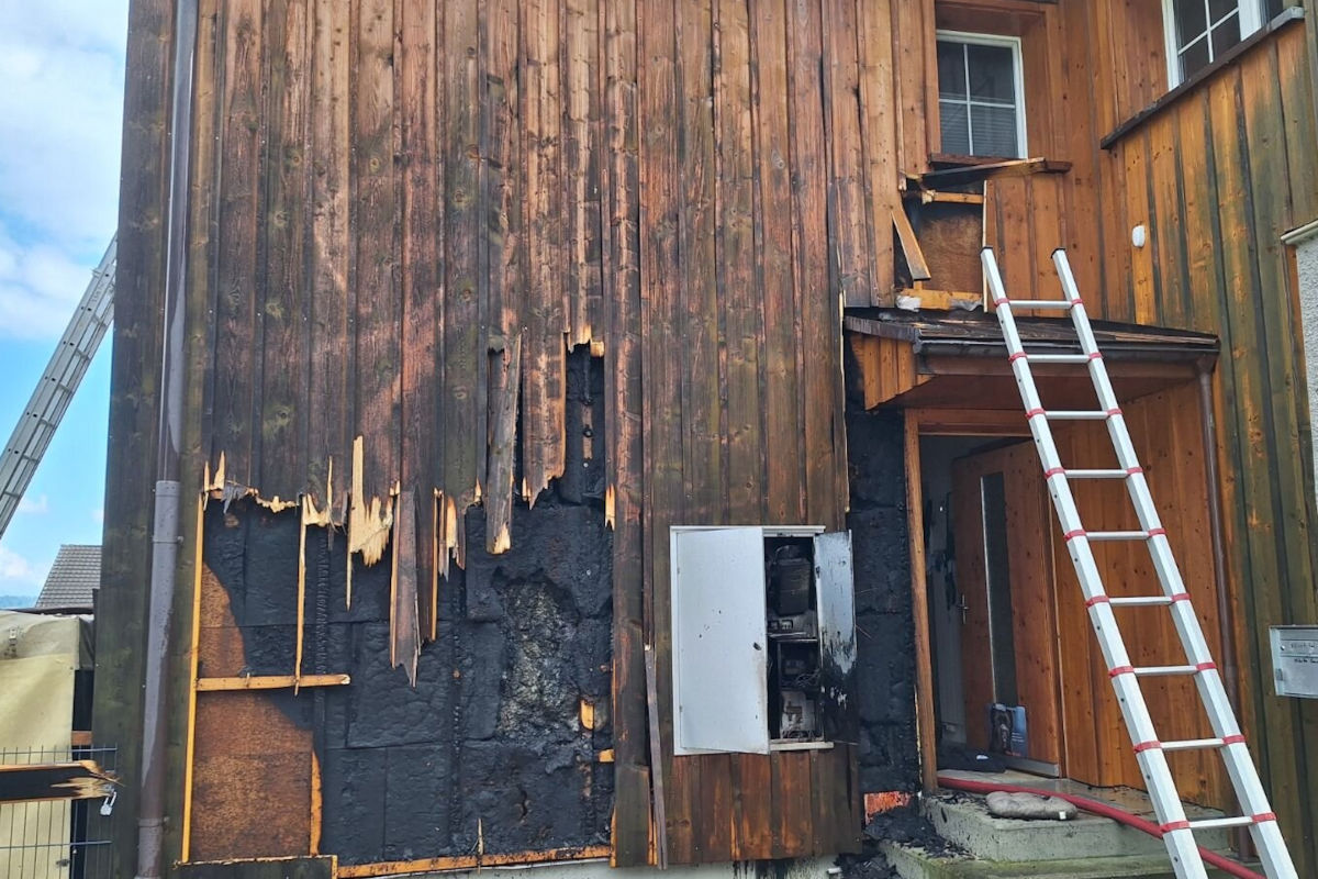 Die Drittperson begann den Brand zu löschen. Beim Eintreffen der örtlichen Feuerwehr wurde entdeckt, dass sich hinter der Fassade das Feuer bis zur Dachtraufe ausbreitete. Die Feuerwehr konnte den Brand löschen. Zum Zeitpunkt des Brandes befanden sich keine Personen im Haus.