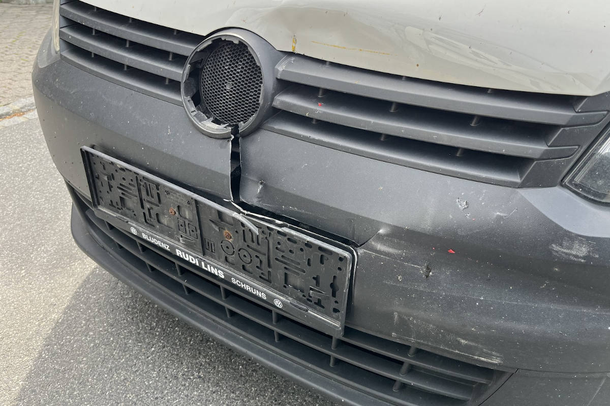 Schaden am stehenden Personenwagen nach dem Unfall in Schaan (Bildquelle: Landespolizei Liechtenstein)
