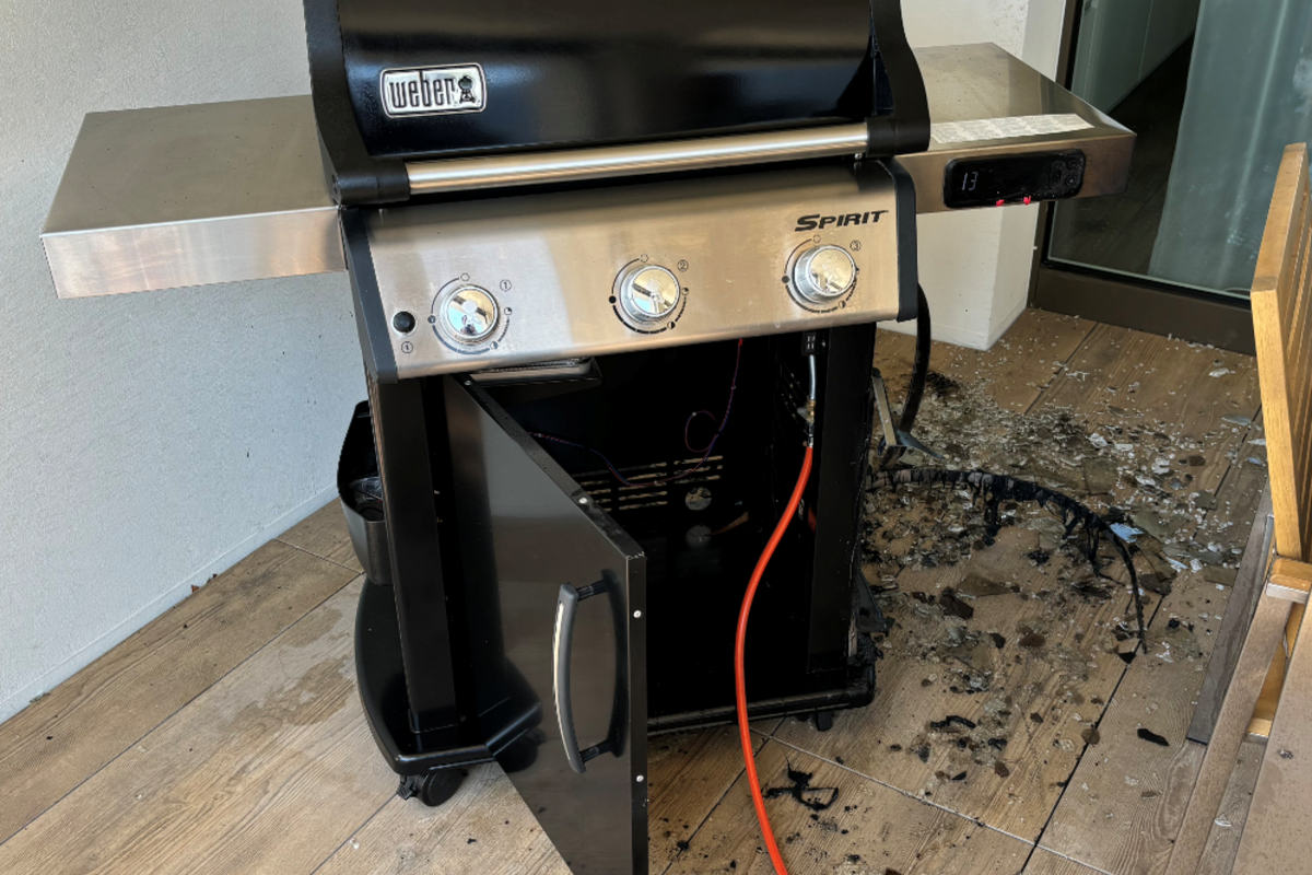 Um 11:56 Uhr wurde bei der Einsatzzentrale der Landespolizei ein Brand mit starker Rauchentwicklung bei einem Mehrfamilienhaus gemeldet. Ein Bewohner beabsichtigte auf dem Balkon zu grillieren, weshalb er seinen Gasgrill einschaltete. Nach kurzer Zeit stellte der Mann fest, dass es bei der Gasflasche, im Bereich des Gashahns, brannte. Beim Versuch den Gashahn zu schliessen kam es zu einer grossen Stichflamme.