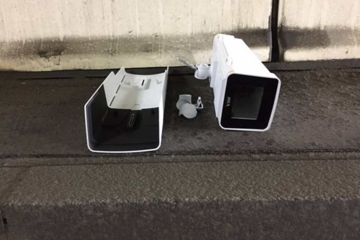 In Triesenberg FL kollidierte ein Autolenker mit den Überwachungskameras. (Bildquelle: Landespolizei Fürstentum Liechtenstein)