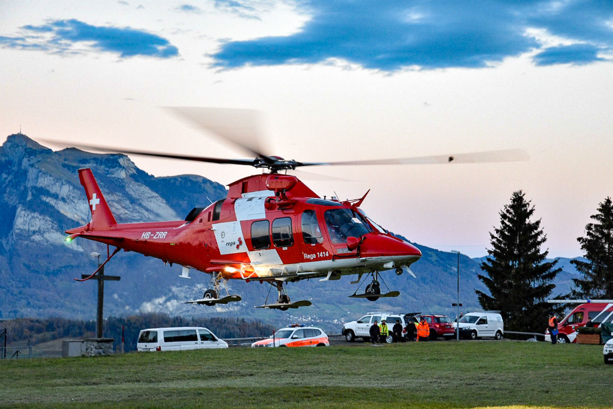 Rega mit einem Helikopter an der Suche nach der Frau.