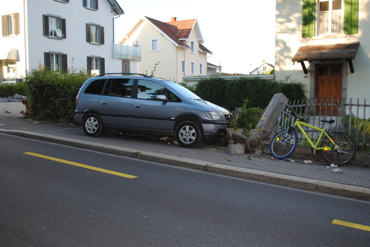 Zwei weitere Fahrradfahrer beabsichtigten auf der Nordstrasse links in den Breitestieg abzubiegen, wobei es zur Kollision mit dem überholenden Personenwagen kam. Der Personenwagen kollidierte anschliessend mit einer Hecke sowie einem Betonpfeiler eines Liegenschaftseingangs.