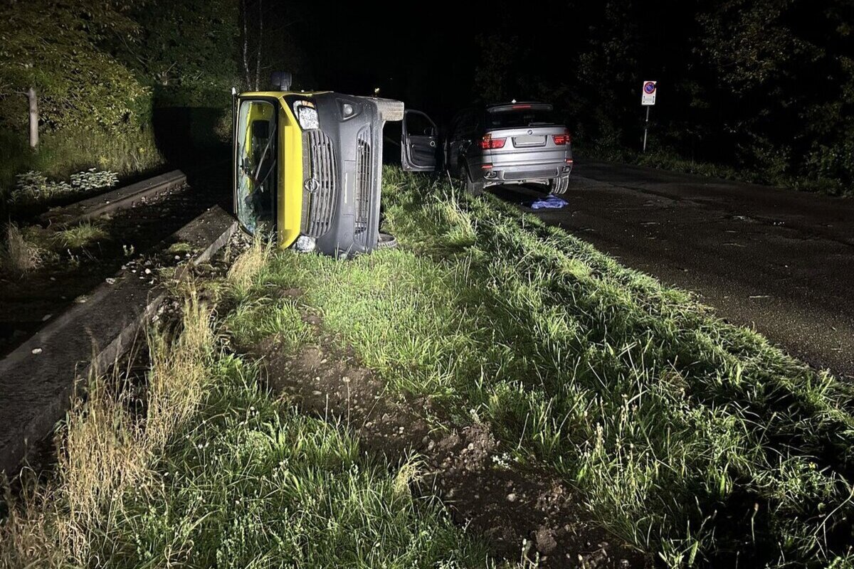 Am Montagabend (15.09.2025) wurde die Schaffhauser Polizeii durch Unbeteiligte über einen Unfall im Herblinger Industriegebiet in Schaffhausen informiert, wobei eine Person verletzt schien und ein beteiligter Lieferwagen auf der Seite zu liegen gekommen war.