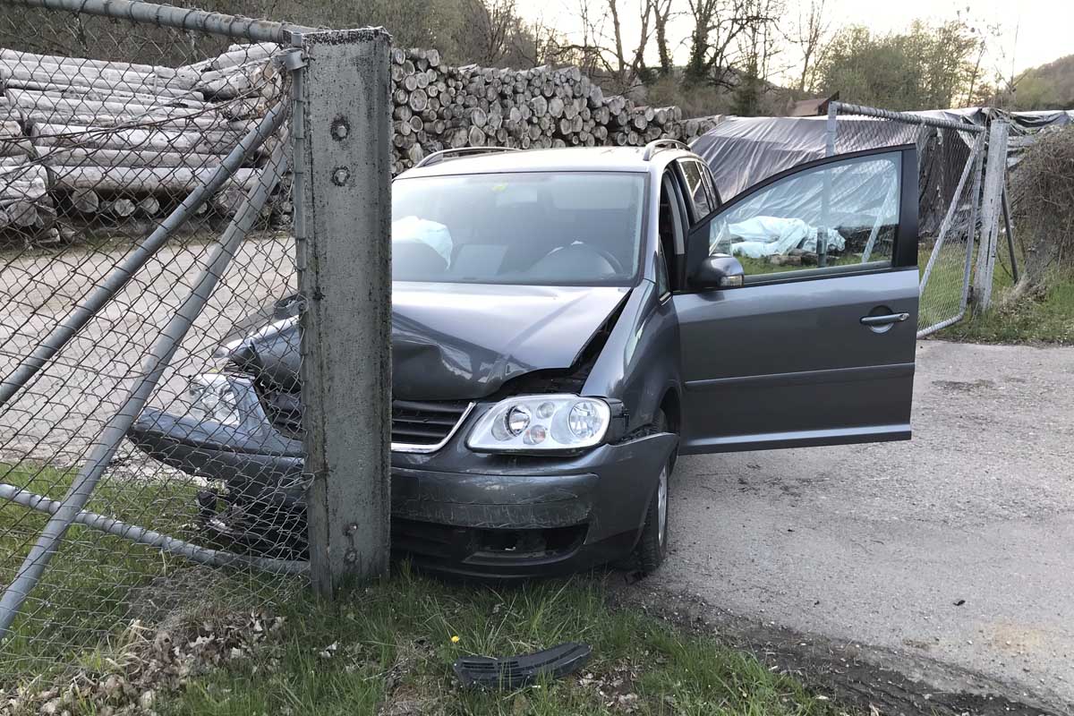 Durch die Wucht des Aufpralls wurde das Fahrzeug noch rund 15 Meter weiter geschleudert und kollidierte schlussendlich mit einem Stahlträger des Zauns, welcher das Fahrzeug zum Stillstand brachte.