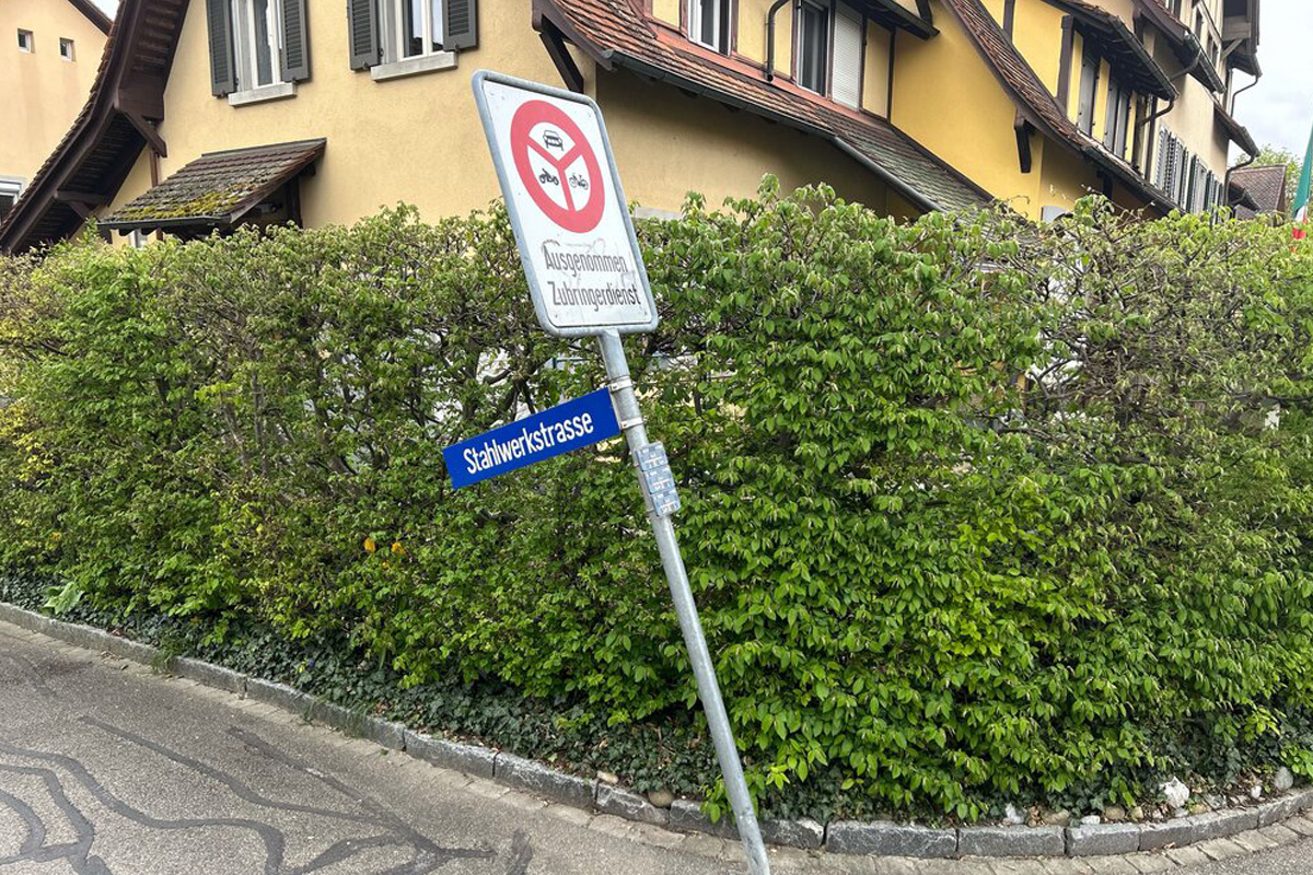 Der Unfallverursacher beschädigte das Schild und entfernte sich von der Örtlichkeit. (Bildquelle: Schaffhauser Polizei)