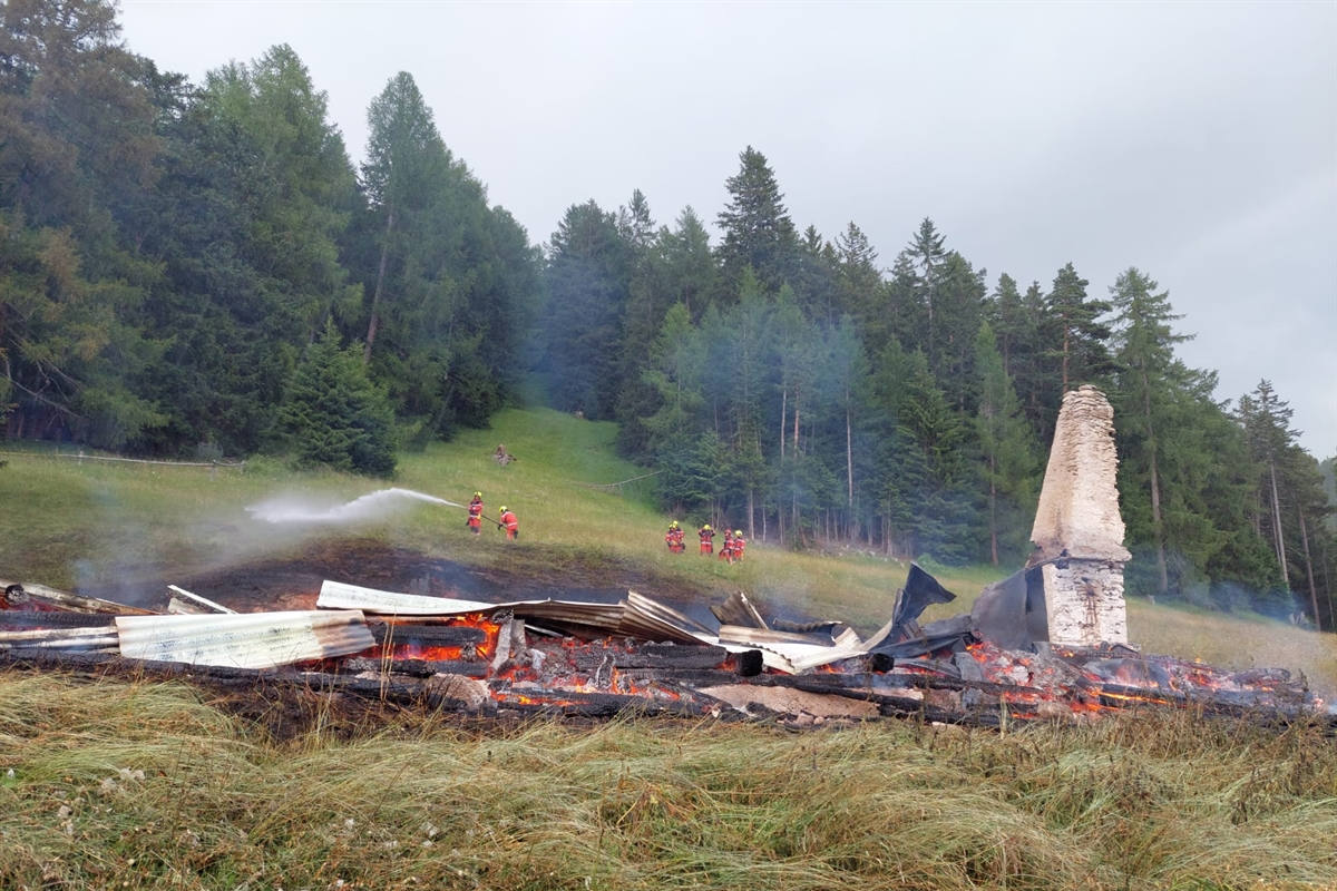 Das Maiensäss mit Stall wurde jedoch vollständig zerstört. Spezialisten der Kantonspolizei Graubünden haben die Brandermittlungen aufgenommen.