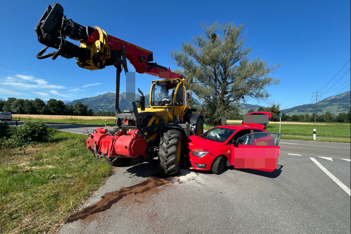 Knapp eineinhalb Stunden später ereignete sich in Schaan der zweite Unfall. Auf der „Benderer Strasse“ kollidierte dabei ein Personenwagen mit einem Traktor. Der Traktorfahrer wollte gerade nach links in eine Nebenstrasse abbiegen, als es zur Kollision mit dem von hinten kommenden Pkw kam. Der Fahrer des Personenwagens klagte über Schmerzen in den Unterarmen.