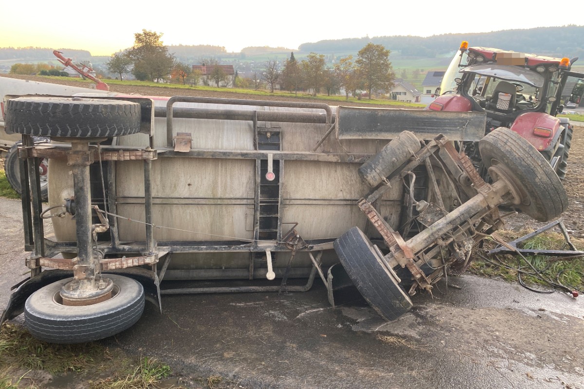 Gestern ist in Schlatt TG ein Jauchewagen gekippt. (Bildquelle: Kantonspolizei Thurgau)
