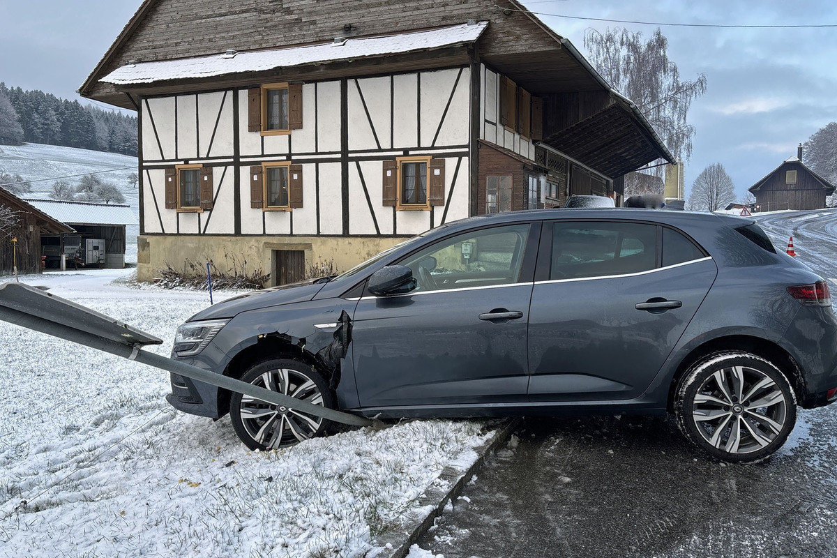 Am Mittwoch (1. April 2026, kurz nach 07:00 Uhr) ereignete sich auf der Krumbachstrasse in Schlierbach ein Selbstunfall. Ein Autofahrer geriet in einer leichten Linkskurve auf der leicht schneebedeckten Fahrbahn nach rechts von der Strasse ab und prallte gegen ein ausserhalb der Fahrbahn parkiertes Auto.