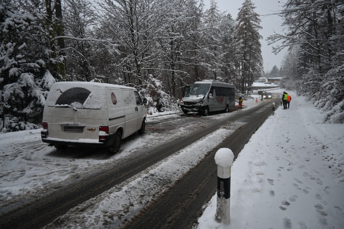Ein von Triesenberg kommender Lieferwagen fuhr gegen 15:30 Uhr auf der Bergstrasse talwärts. In einer Rechtskurve kam er aufgrund des Schnees ins Rutschen, geriet auf die Gegenfahrbahn und kollidierte mit einem korrekt entgegenkommenden Personenwagen. An beiden Fahrzeugen entstand erheblicher Sachschaden.