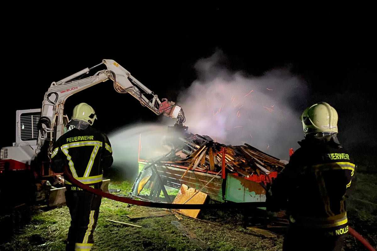 Kurz nach 21 Uhr meldete eine Anwohnerin, dass im Weiler Hagenbuch die Ladung eines Transportanhängers brenne. Die Feuerwehr Am Nollen war rasch vor Ort und konnte das brennende Holz löschen. Verletzt wurde niemand, es entstand Sachschaden von einigen hundert Franken.