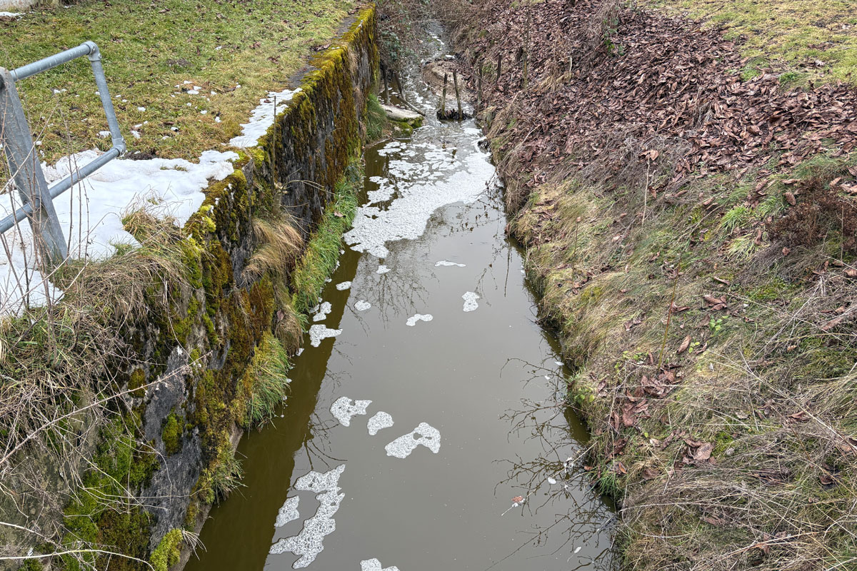 Kurz nach 14 Uhr ging bei der kantonalen Notrufzentrale die Meldung ein, dass der örtliche Bach in Buhwil verschmutzt sei.