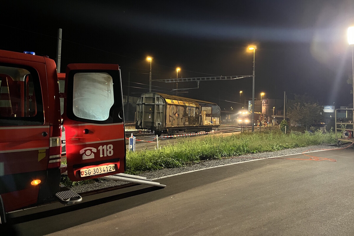 Mitarbeitenden der SBB fiel während dem Zusammenstellen eines Güterzuges auf, dass in einem der Wagons eine Flüssigkeit aus einem Behälter austrat. Wie sich herausstellte, handelte es sich dabei um einen 20 Liter Kanister, der mit einer ätzenden alkalischen Flüssigkeit, das als Bodenreinigungsmittel verwendet wird, gefüllt war. Gestützt auf diese Meldung wurde sowohl die örtliche Feuerwehr als auch die Berufsfeuerwehr St.Gallen mit der Chemiewehr und einem Chemiesachverständigen aufgeboten. Die SBB bot ihrerseits einen Löschzug auf.