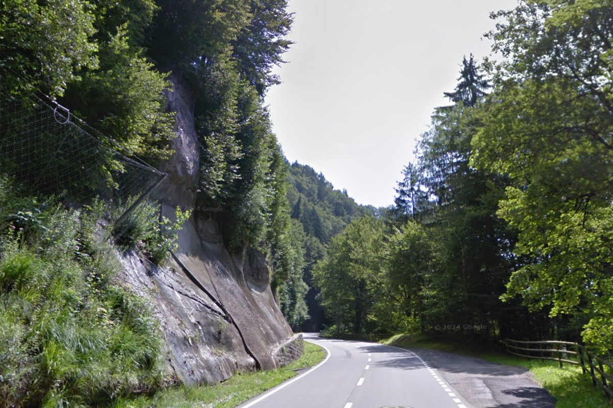 Die Kantonsstrasse musste wegen Anrissen vorübergehend gesperrt werden. (Bildquelle: Google Maps)