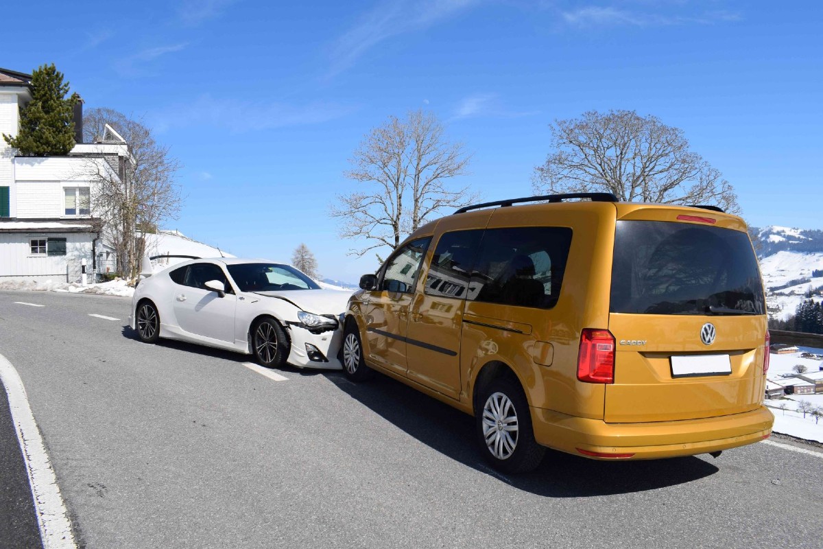Am Dienstagmittag, 23. März 2021, ist es in Schwellbrunn zu einer Frontalkollision zwischen zwei Autos gekommen. Personen wurden nicht verletzt.