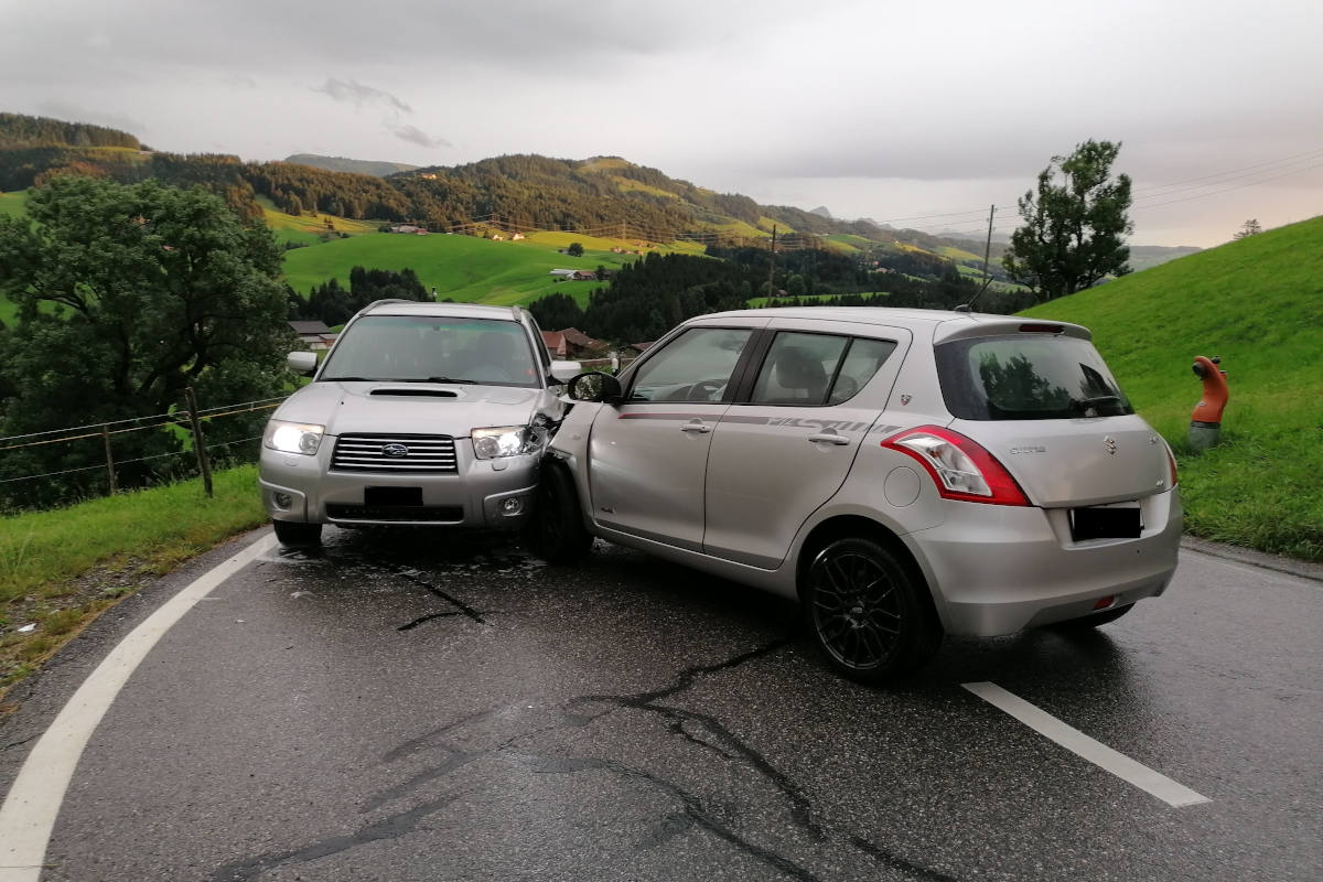 Kurz vor 21.00 Uhr fuhr ein 19-jähriger Mann mit einem Personenwagen von Schwellbrunn Richtung Waldstatt. Auf Höhe Säntisblick 186 kam er ausgangs einer Kurve aufgrund der nicht angepassten Geschwindigkeit über die Fahrbahnmitte und kollidierte seitlich frontal mit einem entgegenkommenden Personenwagen.