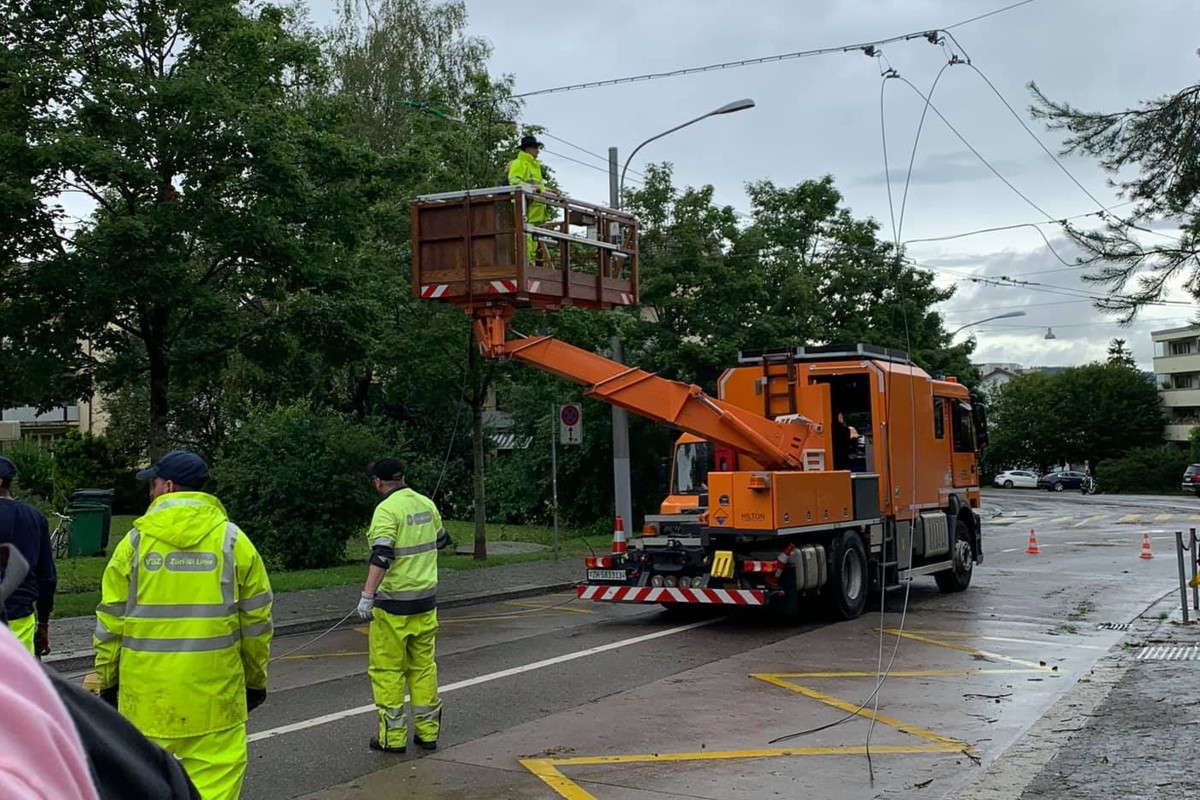 Strassen blockiert und der Tram- sow ie Busbetrieb kurzzeitig eingestellt werden mussten. Im Laufe des Vormittags konnte dank grossem Einsatz vieler VBZ-Mitarbeitenden und in enger Zusammenarbeit mit Feuerwehr, Stadtpolizei sow ie Grün Stadt Zürich ein grosser Teil des Tramnetzes w ieder in Betrieb genommen w erden. Beim