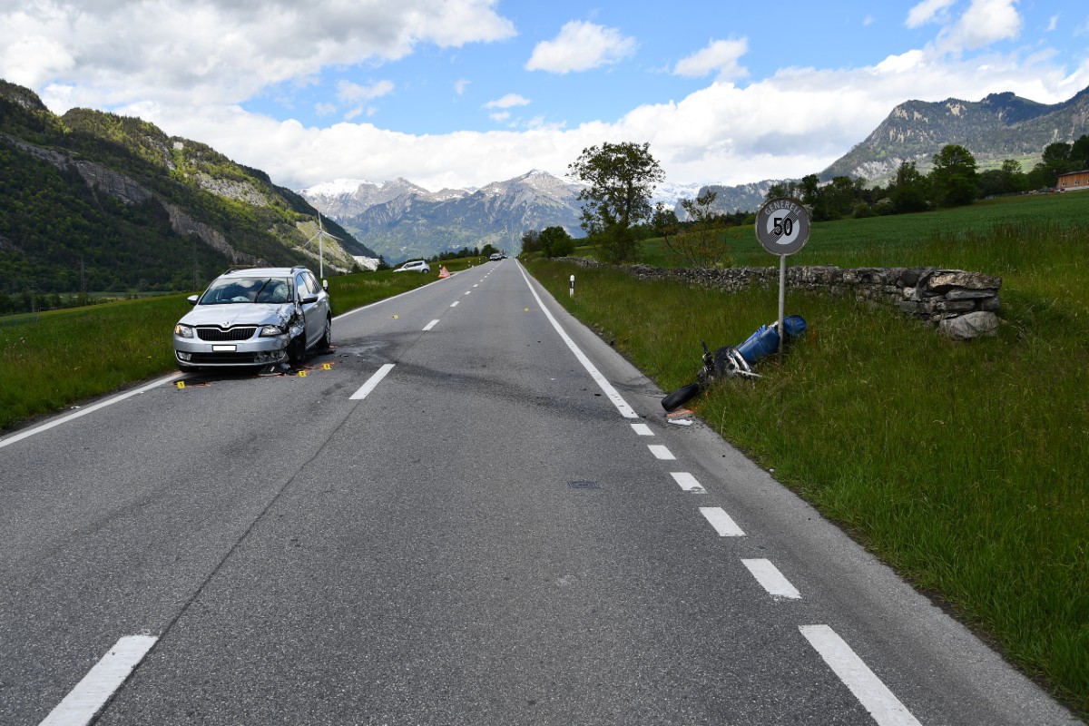 Ein schwerer Motorradunfall ereignete sich heute in Chur GR. (Bildquelle: Stadtpolizei Chur)