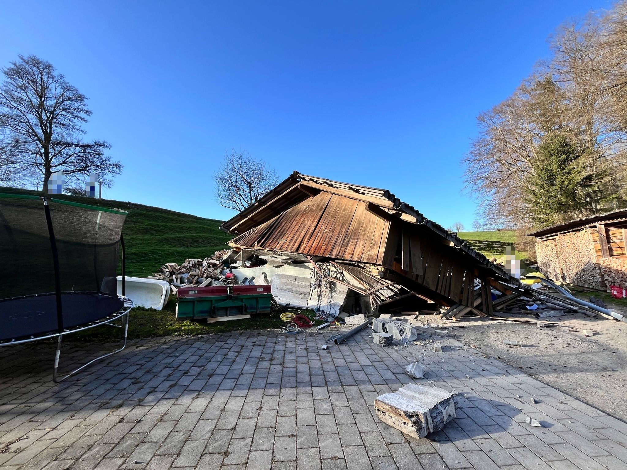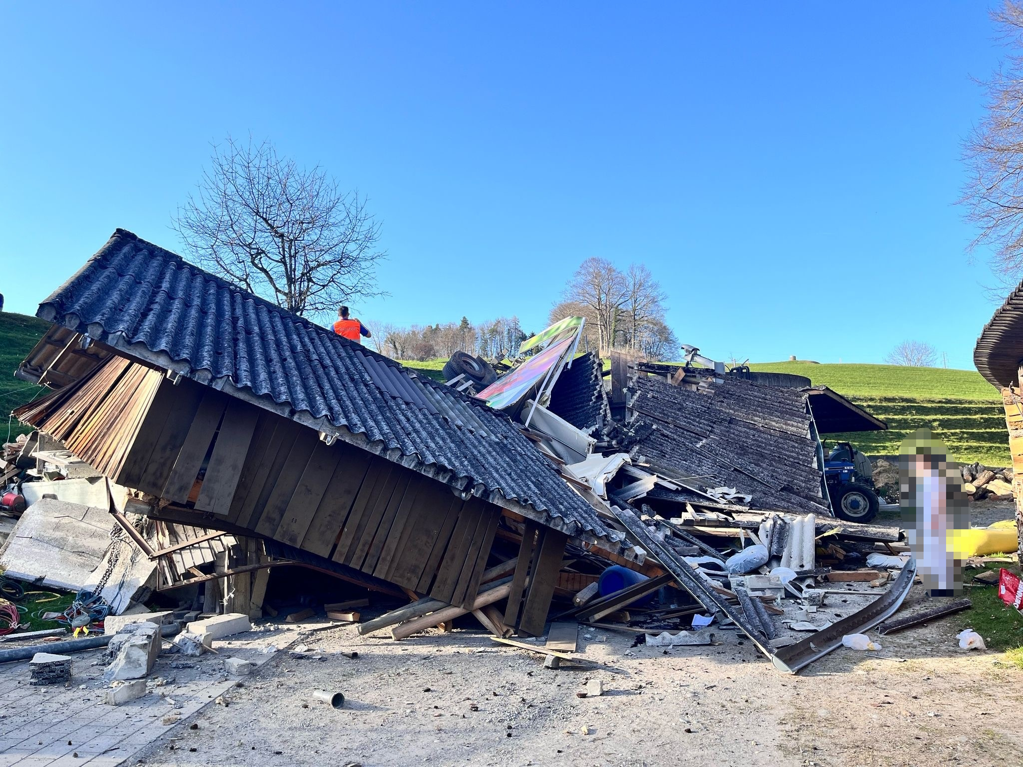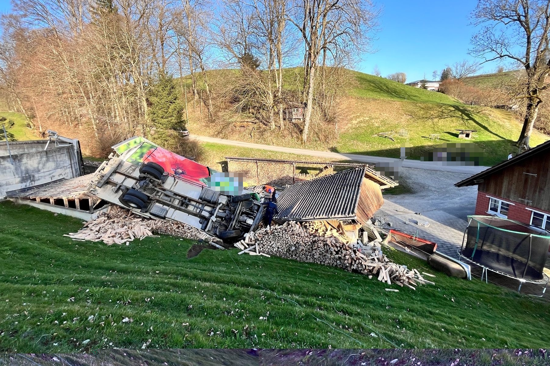 Der Lastwagen sowie die Scheune wurden durch den Unfall total beschädigt. Für die Bergung des Lastwagens musste eine Spezialfirma beigezogen werden.