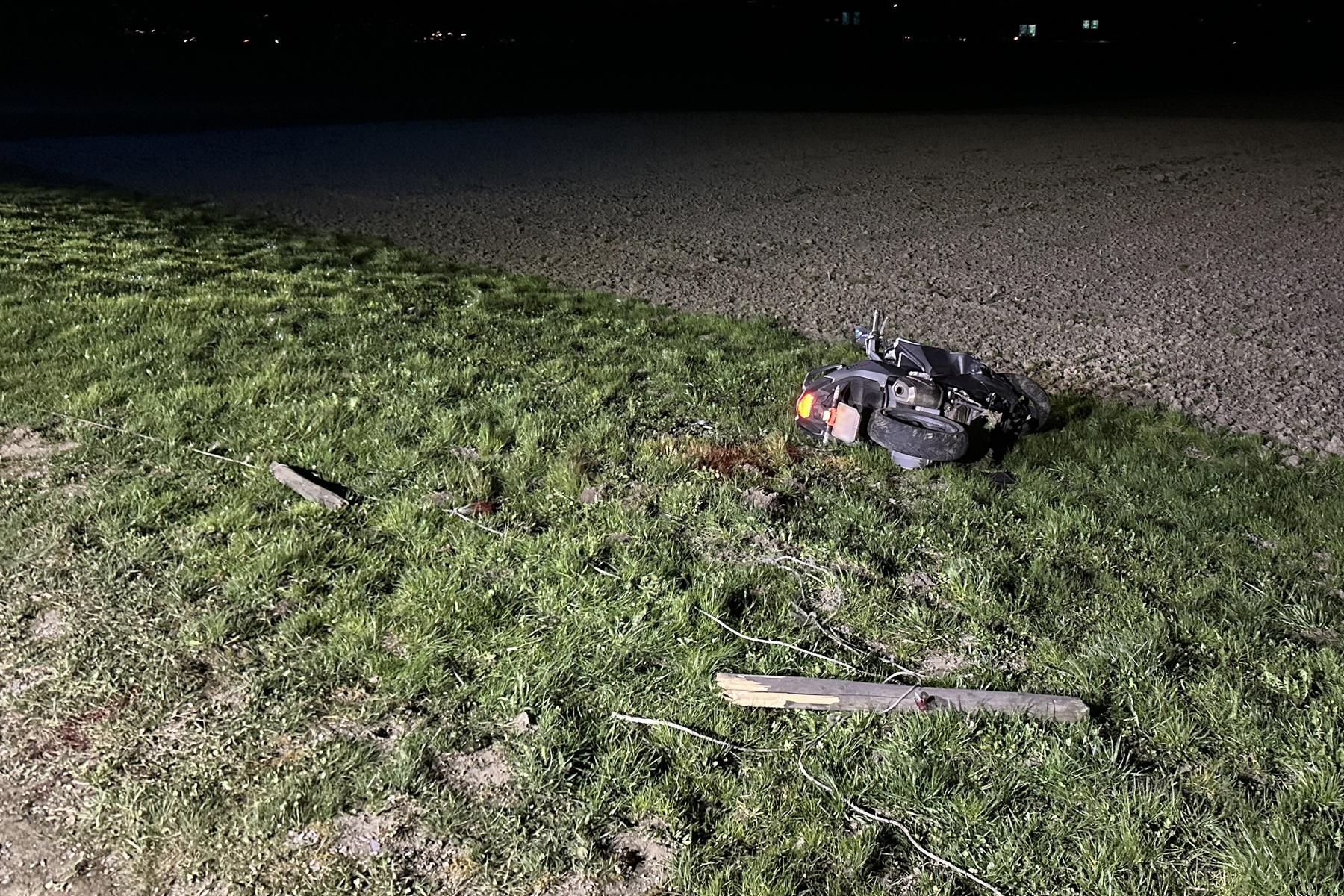 Gründen mit dem Roller von der Fahrbahn abkam und anschliessend im Wiesland stürzte.