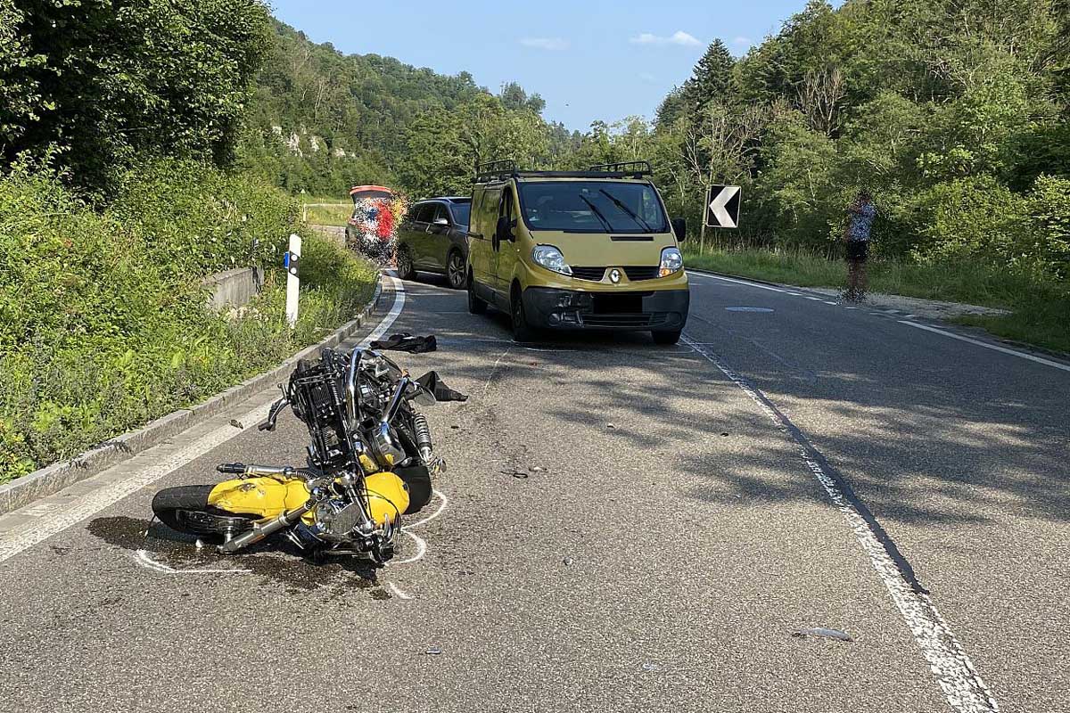 Bei der Kollision wurde der Motorradlenker schwer verletzt. Nach der Erstversorgung durch den Sanitätsdienst, wurde er durch die Rega in ein Spital eingeliefert.