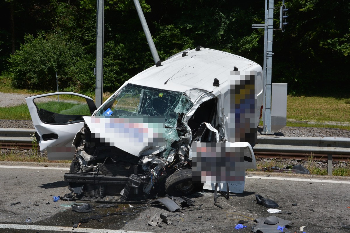 Beim Unfall wurde der 21-Jährige schwer verletzt und im Fahrzeug eingeklemmt. Die Strassenrettung der Feuerwehr musste die Person mit schwerem Gerät aus dem Lieferwagen bergen. Nach der Erstversorgung durch den Rettungsdienst wurde er in lebensbedrohlichem Zustand durch die Rega ins Spital geflogen. Der 52-Jährige wurde mittelschwer verletzt und durch den Rettungsdienst ins Spital gebracht. Es entstand Sachschaden von mehreren zehntausend Franken.