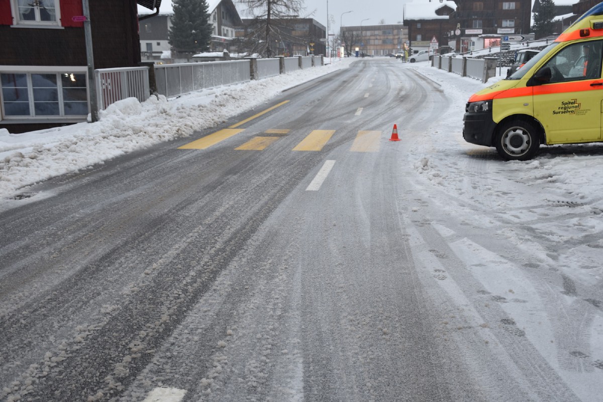 Sedrun GR - Lieferwagen rutscht gegen Mann auf Fussgängerstreifen
