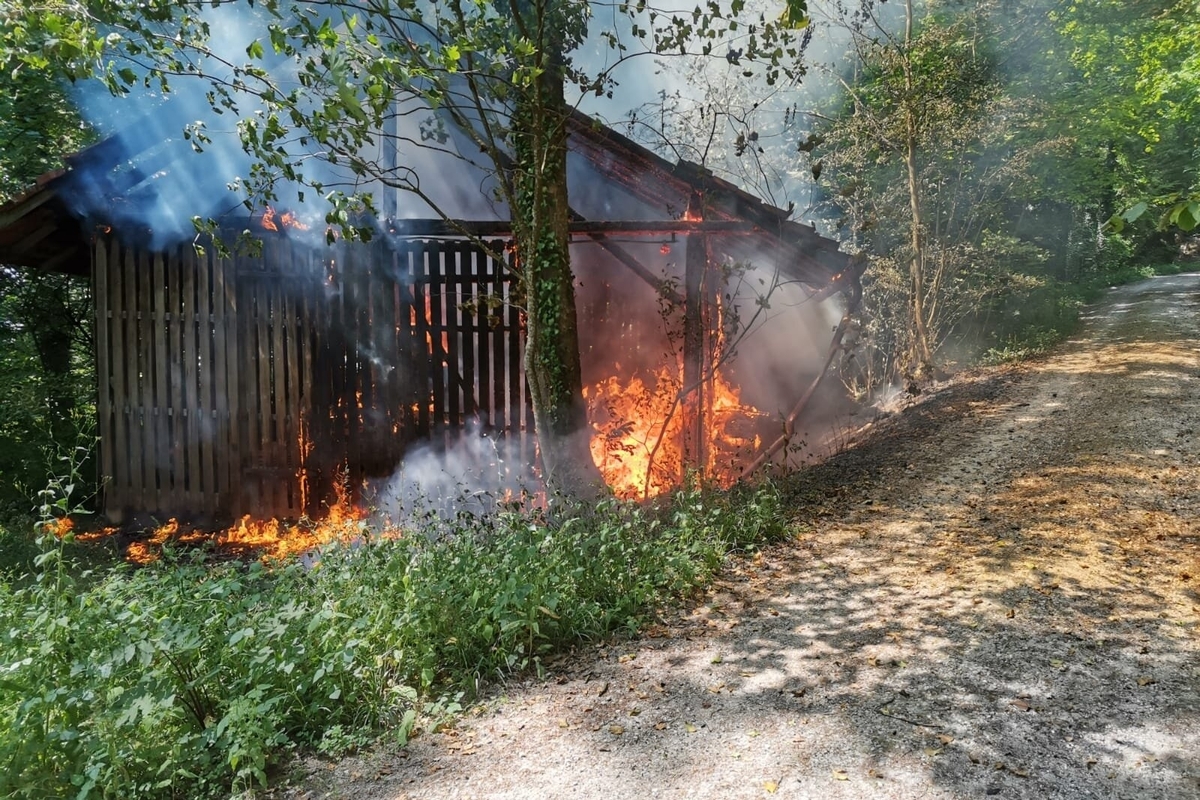 Ein Brand zerstörte am Freitagnachmittag, 16.06.2023, im Wald oberhalb von Seengen einen Holzschopf. Niemand wurde verletzt.