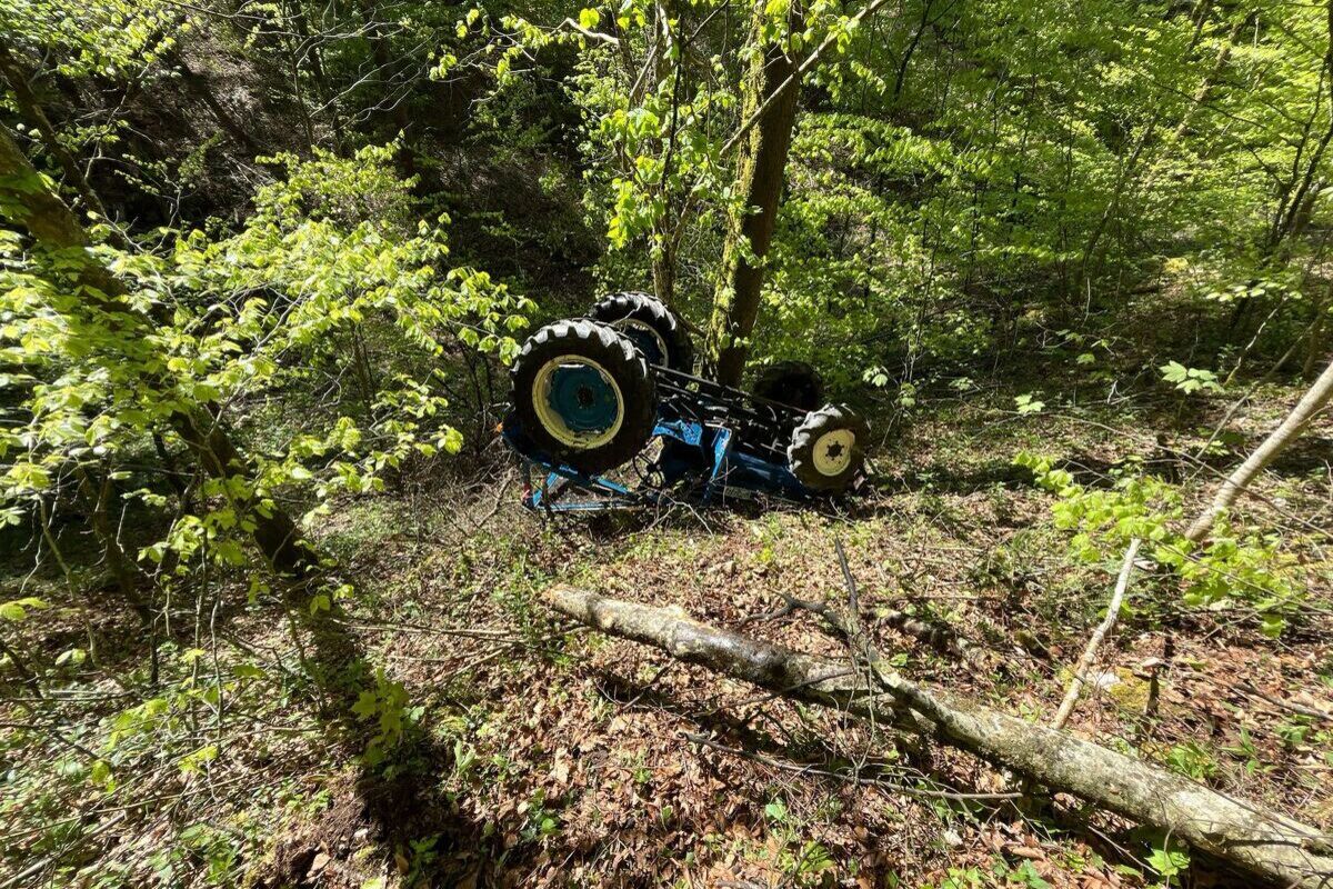 In der Folge stürzte der Traktor einen Steilhang hinab, überschlug sich und kam nach zirka 50 Metern an einem Baum zum Stillstand.