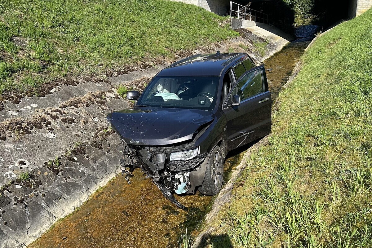 Anschliessend geriet der Personenwagen ins angrenzende Wiesland und kam in einem Bachbett zum Stillstand. Die Verunfallte erlitt bei der Kollision unbestimmte Verletzungen und wurde durch den Rettungsdienst in Spitalpflege gebracht. Teile der beschädigten Leitplanke prallten zudem gegen ein entgegenkommendes Auto und verursachten einen grossen Schaden.