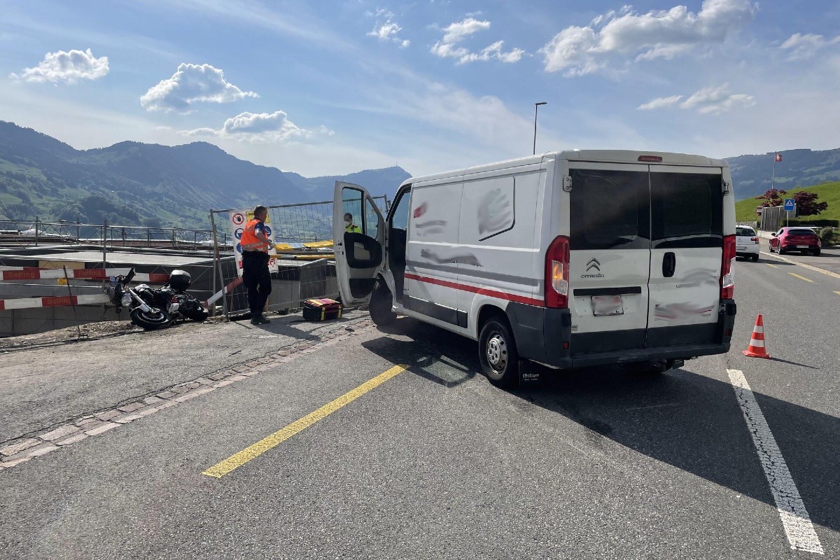 Der Motorradfahrer verletzte sich beim Unfall gestern in Seewis SZ erheblich. (Bildquelle: Kantonspolizei Schwyz)