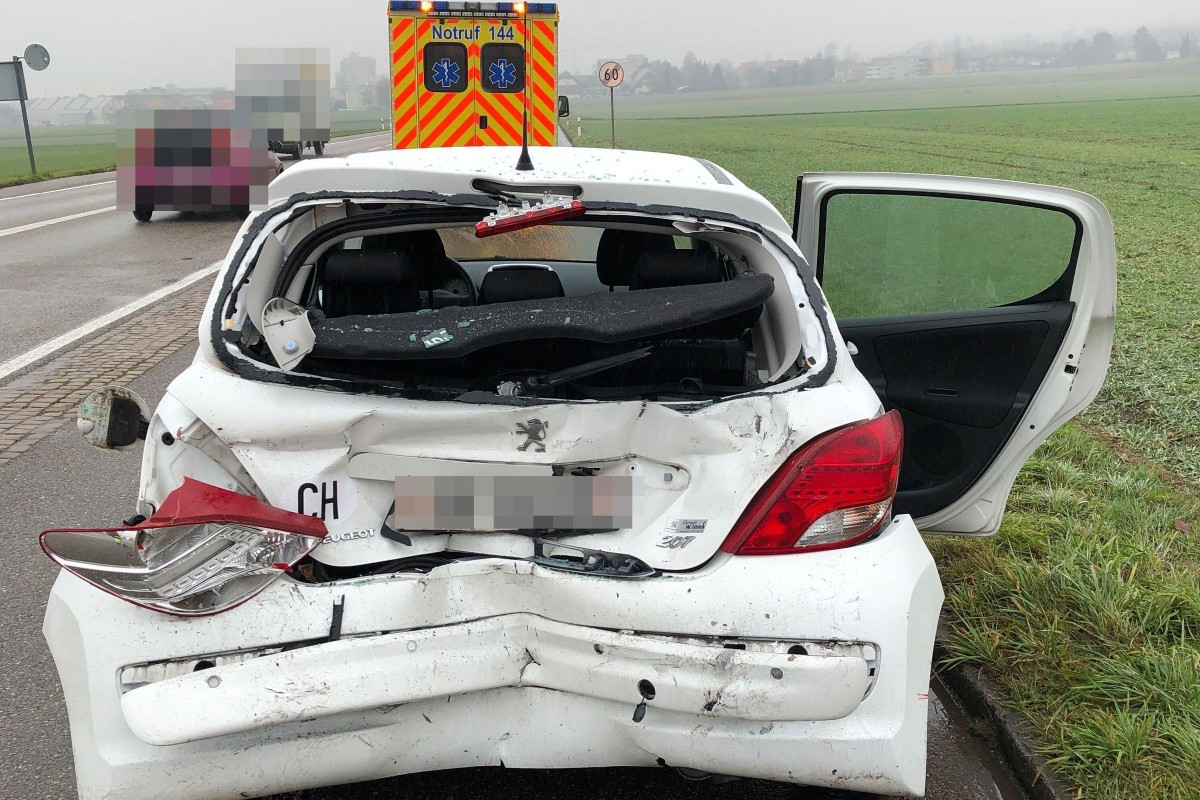 Aufgrund des Rotlichts bei der Lichtsignalanlage, hielt die Automobilistin an. Aus noch zu klärenden Gründen realisierte der nachfolgende Lastwagenfahrer das Abbremsmanöver zu spät und kollidierte mit dem Heck des stillstehenden Autos.