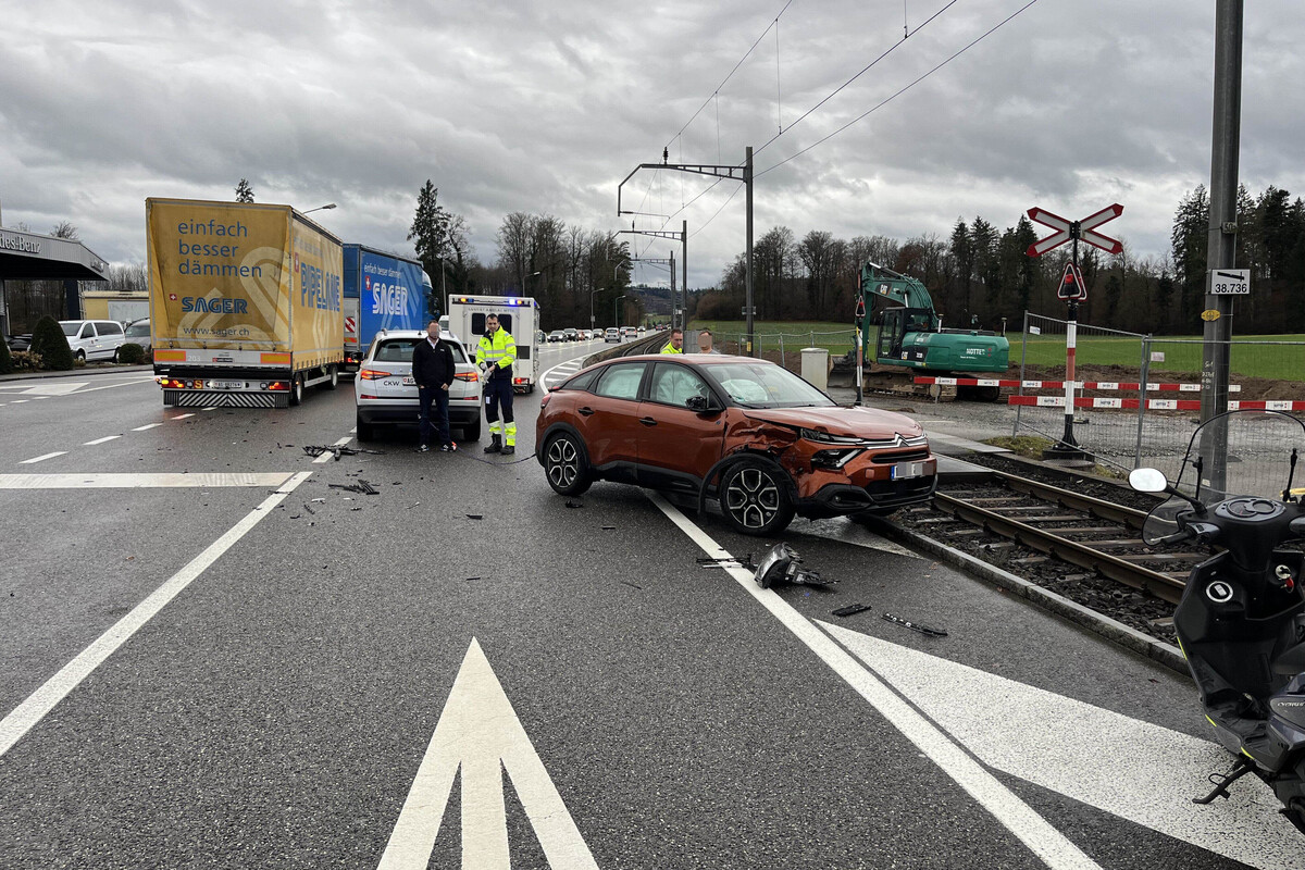Ausserhalb von Seon sind gestern zwei Autos zusammengestossen. Eines davon kam unmittelbar neben dem angrenzenden Bahngleis zum Stillstand und blockierte so die Strecke vorübergehend. Es blieb bei grossem Blechschaden.