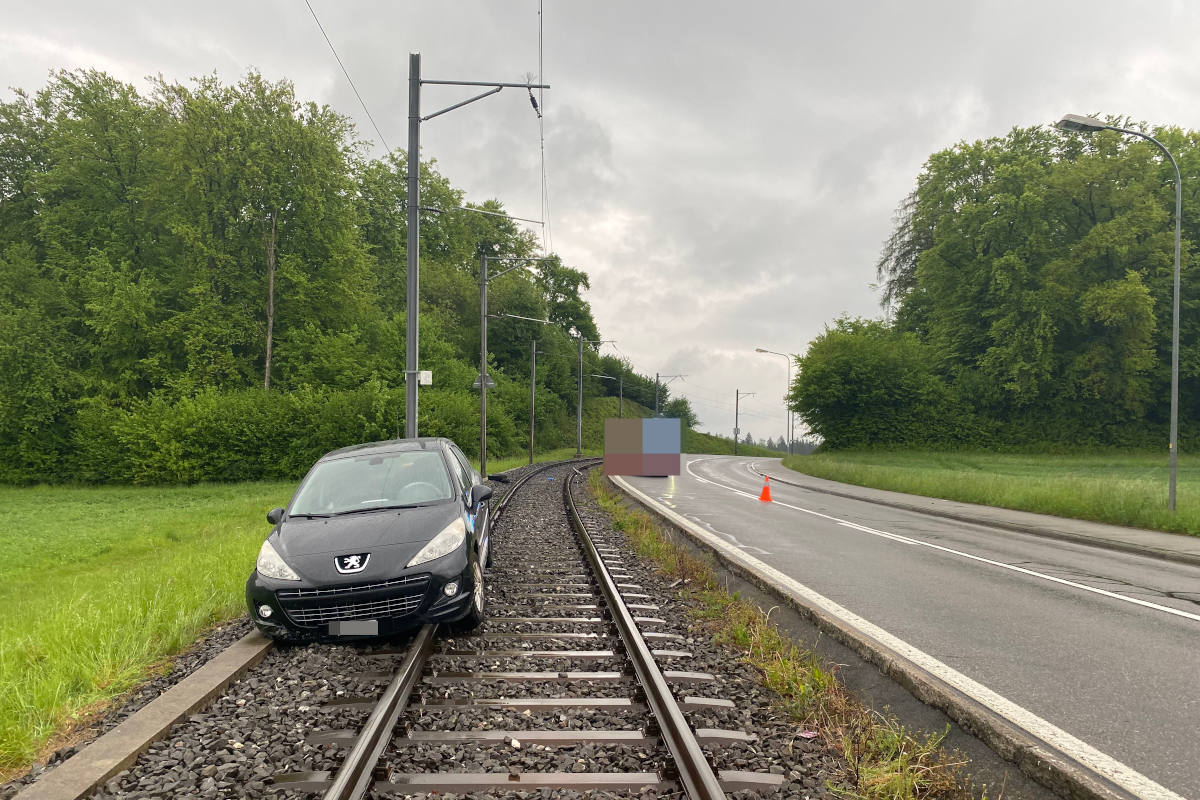 Am Donnerstag verursachte eine Automobilistin einen Selbstunfall und geriet dabei auf die Bahngleise. Die Lenkerin blieb unverletzt. Den Führerausweis musste sie abgeben.